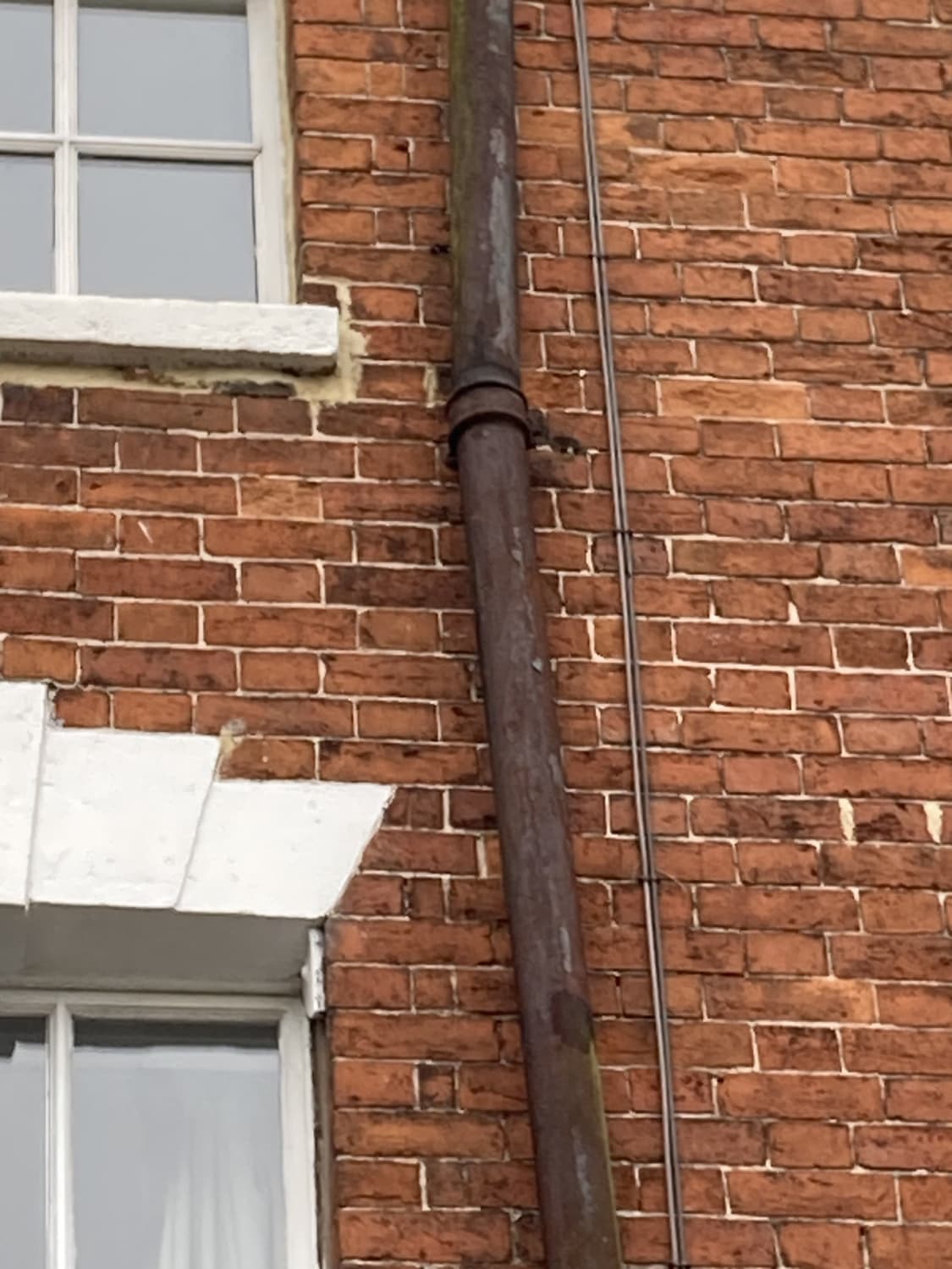 Cast iron downpipes are highly durable, but over time, the brackets securing them to the wall can weaken due to rust, heavy rain, or movement caused by temperature changes. A loose or broken bracket should be repaired as soon as possible to prevent further damage to the downpipe or brickwork.