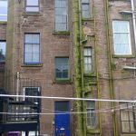 The gutters at the front and back of a terrace house in Montrose DD10 need clearing, and any loose slates that may be causing leaks should be fixed. Learn about the cleaning and repair process.